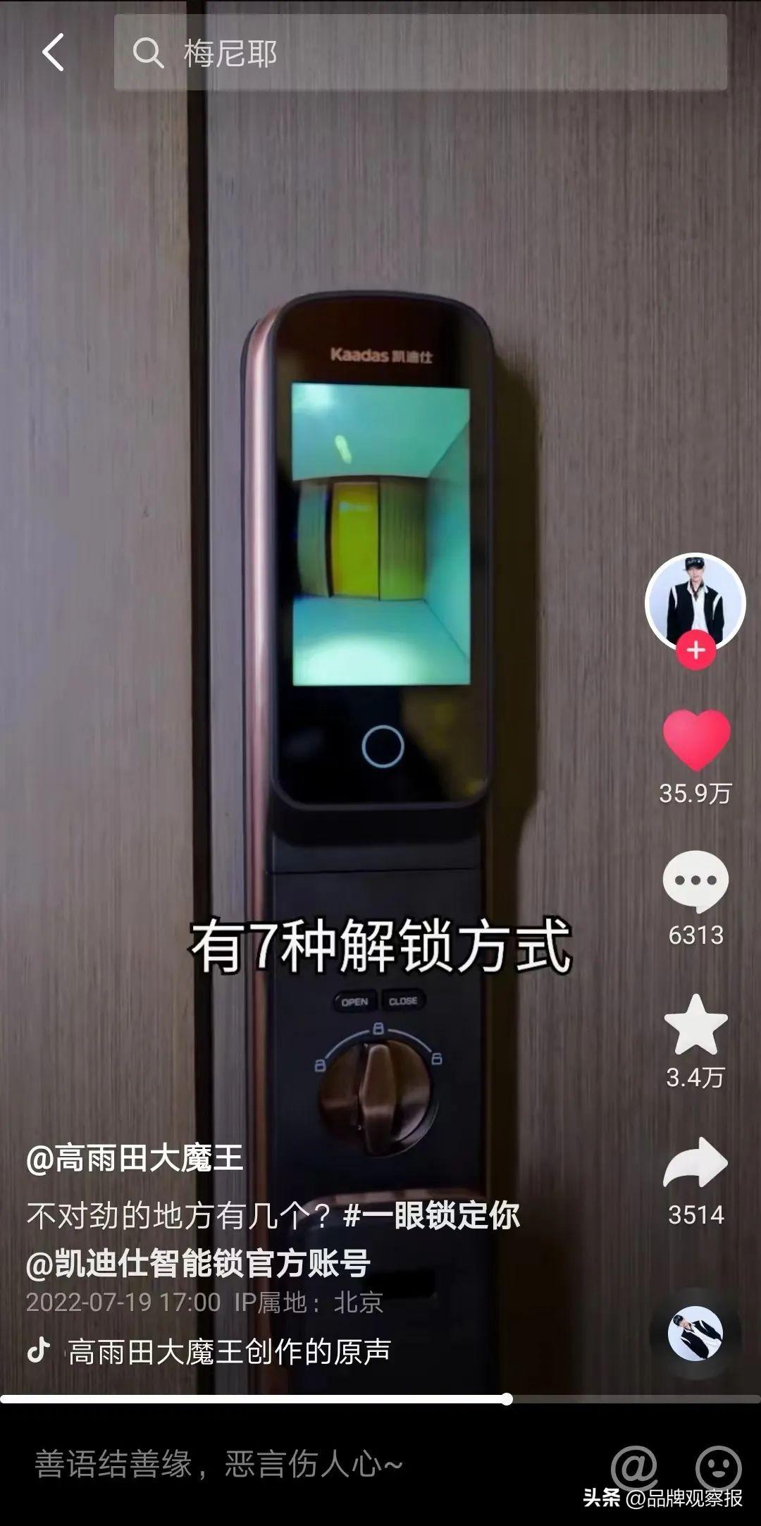 无论是“一眼锁定你”这一基于情感的沟通点,还是有趣的抖音贴纸互动,尤其是kol们围绕多元话题场景进行的故事演绎,这些都让凯迪仕智能锁“千里眼” K20 Pro Max不再只是一个冷冰冰的智能锁产品,而是真正走进人们日常生活中,可以带来安全感、让消费者信任的好助手、好朋友。