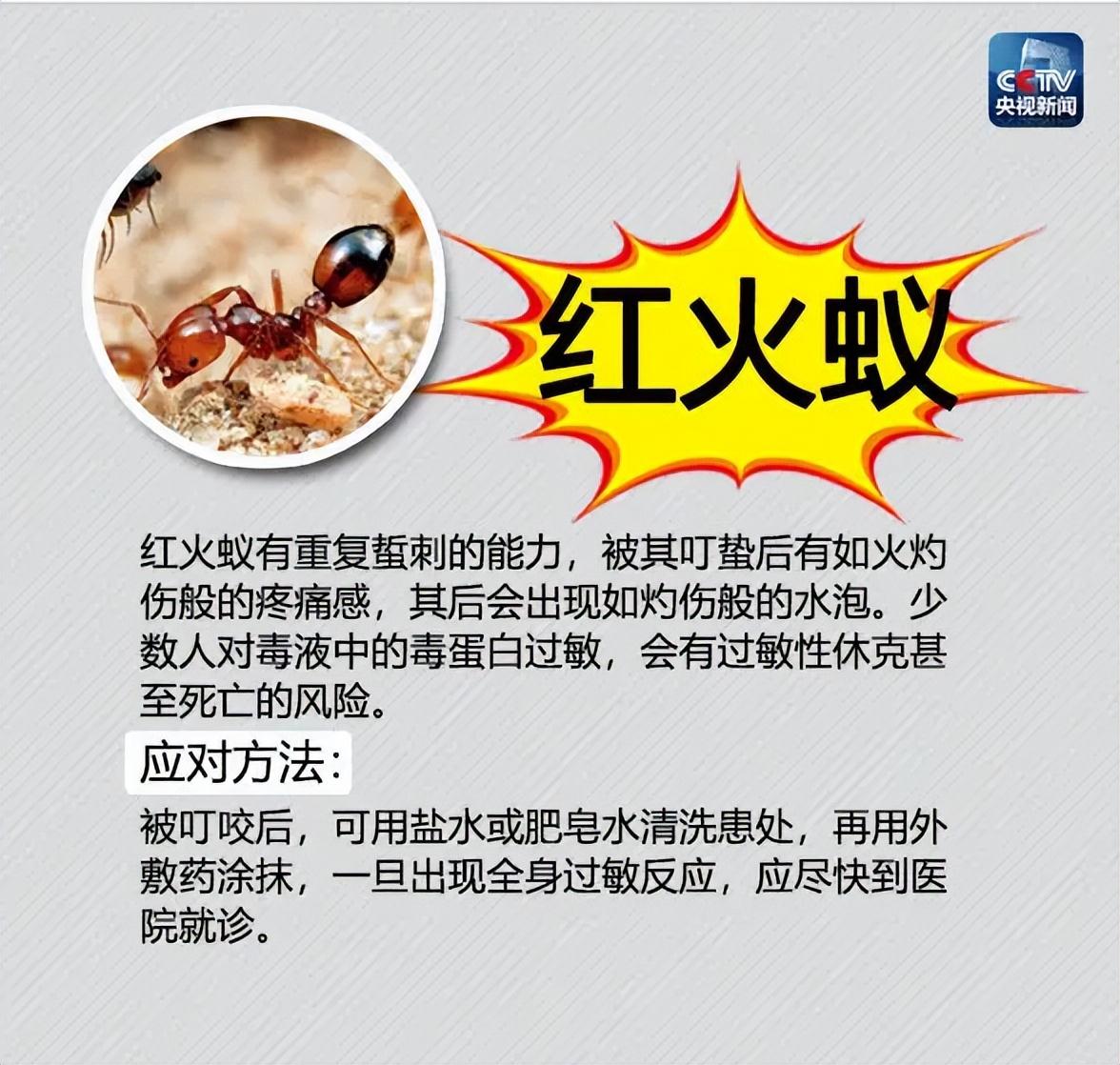不过不要太害怕,红火蚁致死属于极端案例,更多的是出现红斑、水泡等,只是伤口可能会出现持续性疼痛。