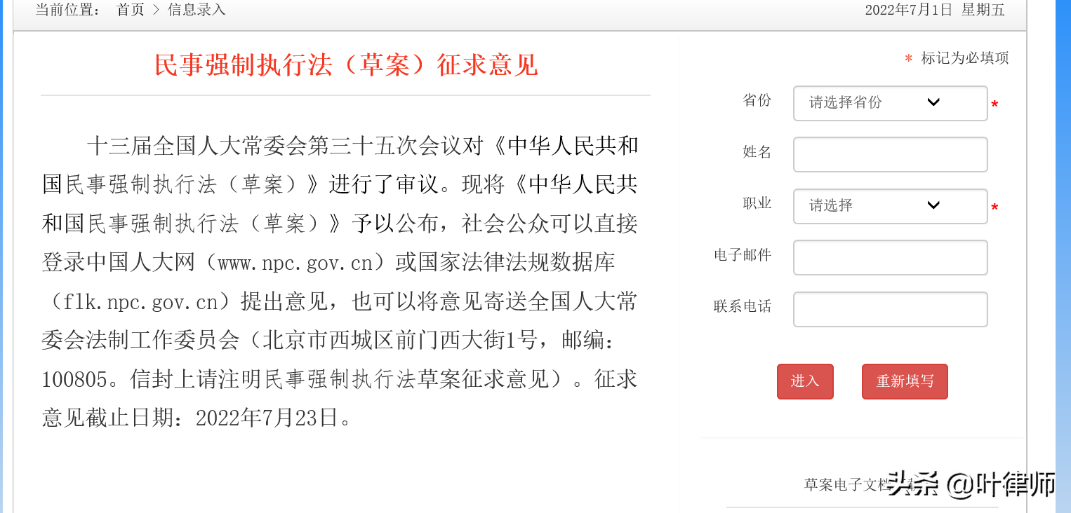 最近有一部非常重要的法律草案在征求意见。这个法律就是《民事强制执行法》。