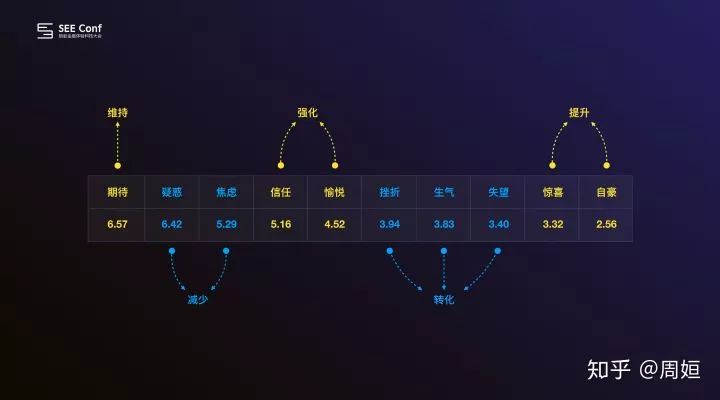 根据这个排序,我们需要做的是强化/提升用户的正面情绪,减少/转化用户的负面情绪;