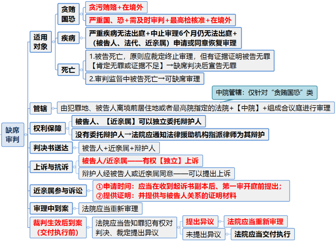 中院级别管辖:1.国安、恐【没有黑社会】、无期、死刑、没收违法所得、缺席审判程序(缺席审判程序一审由中院管的案件仅限于贪污贿赂+国恐类;疾病、死亡类基层法院也可一审)