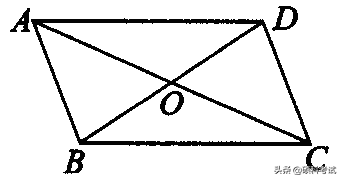 【分析】虽然判别平行四边形可从“边、角、对角线”三个角度来考虑,但此例图中已有对角线,所以最适当方法应是“对角线互相平分的四边形为平行四边形”.