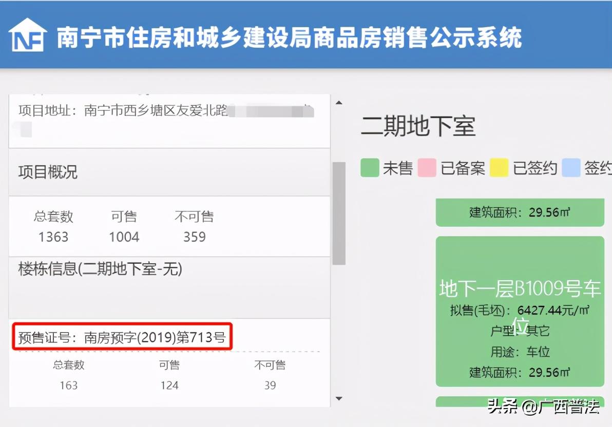 购房者可进入南宁市住房和城乡建设局商品房销售公示系统中,核实具体房源对应的预售许可证号,与房开商所出示的是否一致,避免上当受骗。