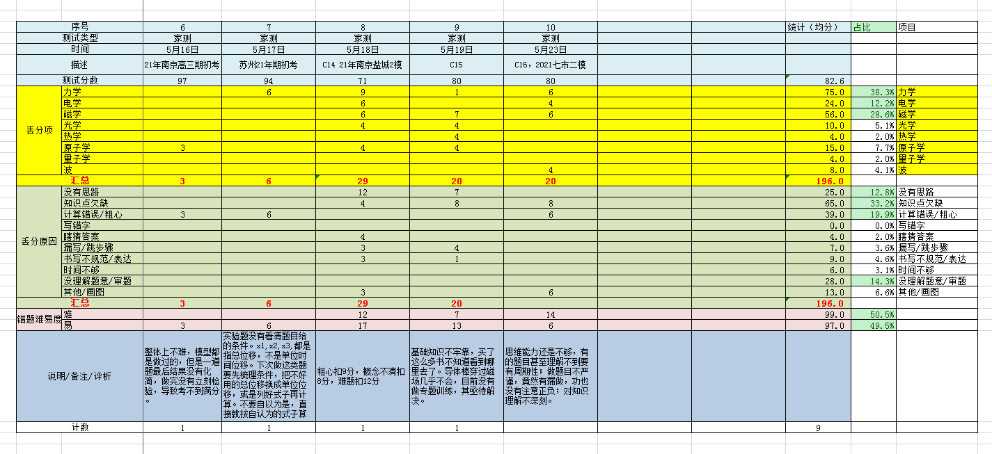 接下来是例行的物理测试,本周仍是4次物理、1次化学,数学测试已无必要故取消,专注于解析几何导数项目。