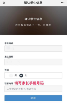 第四步:核对儿童档案,填写家长联系电话,点击继续。