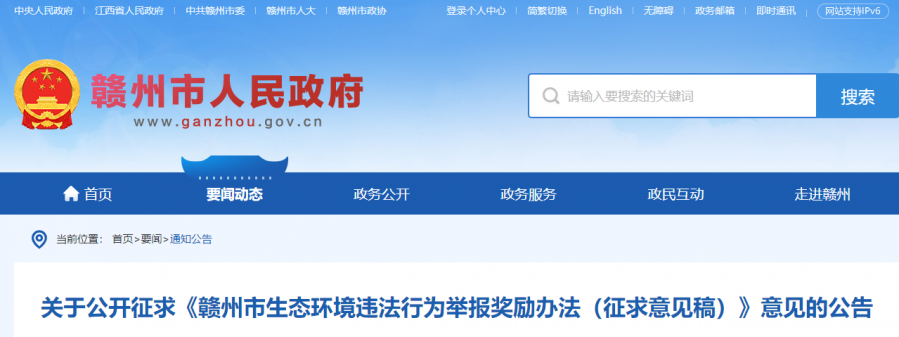 赣州市生态环境违法行为举报奖励办法