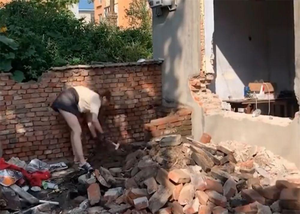 针对一系列居住问题,这对夫妻开始进行房屋的拆改工作,两人先是将老旧的门窗、院内残破的砖墙拆掉,而后开始重新规划室内格局。