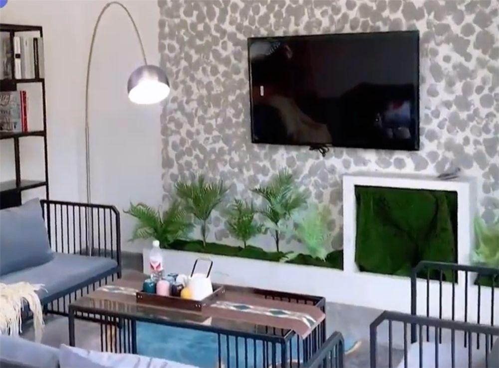 至于家中的主客厅,是一家人观影、喝茶、聊天的地方,同样被重新改造,背景墙是女屋主和朋友一起用剩余漆料装点的,也颇具现代感。