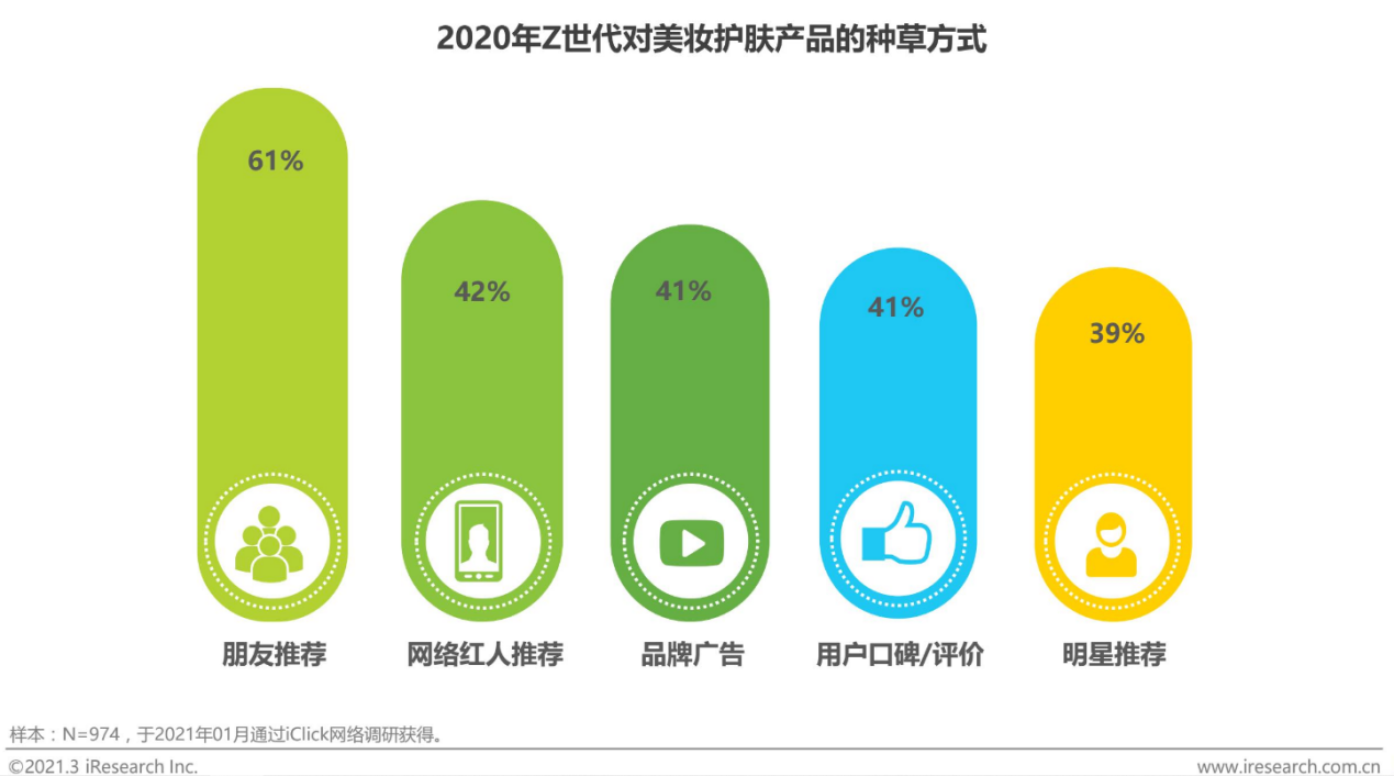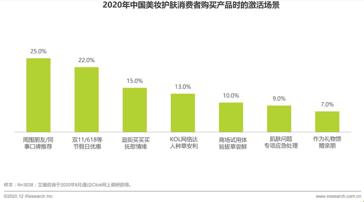 周围人的推荐和特定场景是美妆消费的重要激活场景。美妆护肤消费者在购买时,除了重大优惠和朋友推荐外,在情绪不好时,特别喜欢靠买买买来安抚自己,甚至超过网上的KOL种草。这与女性的情绪化特点高度相关,女性消费者的共情能力很强,更容易被一些能够产生情感共鸣的内容所吸引。