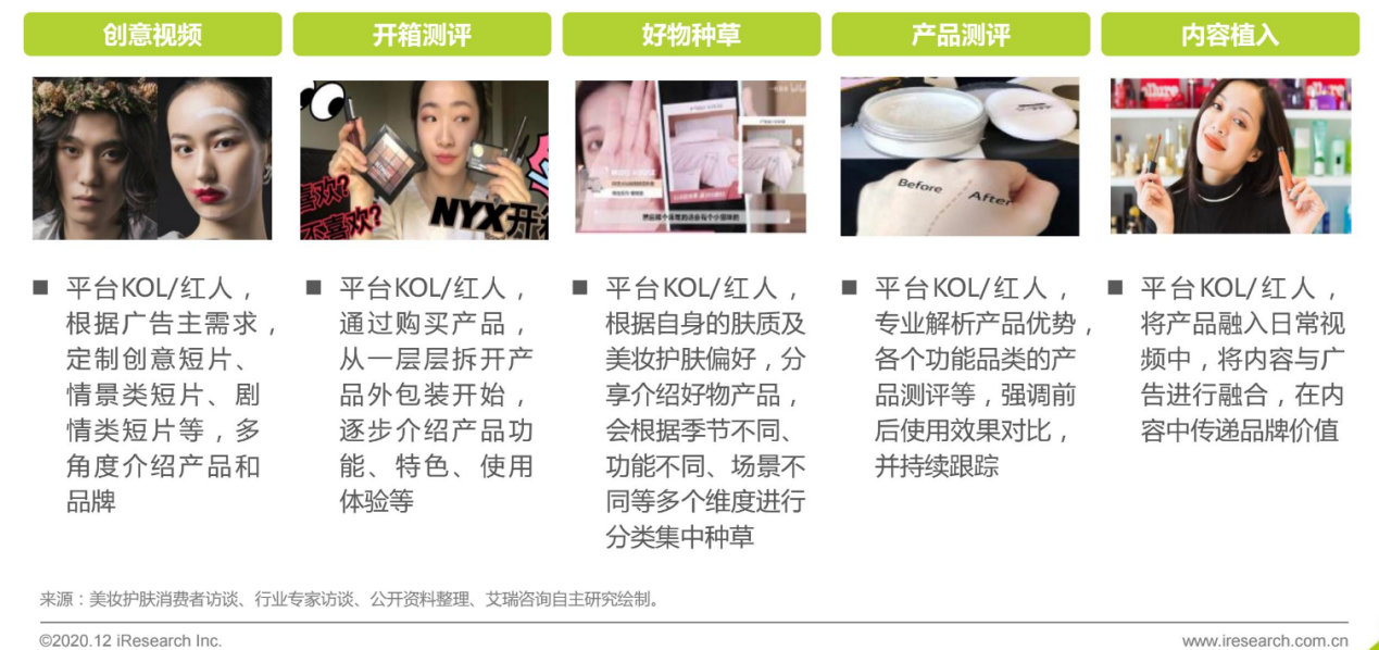 短视频/直播平台的兴起更是为美妆护肤品牌营销提供新的互动形式,很多新锐品牌借助口碑传播与消费者建立沟通,迅速成为业内黑马;视频类内容共创方式广泛被消费者接受,可有效满足广告主对品牌营销的诉求,围绕平台KOL/红人粉丝圈层用户需求特征,将品牌广告与视频内容相结合,实现“哪里有用户,哪里就有营销”;