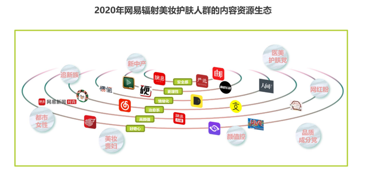 网易各类平台集聚众多美妆护肤行业目标消费者圈层,同时具备丰富优质的内容资源生态,针对不同圈层消费者进行差异化营销。