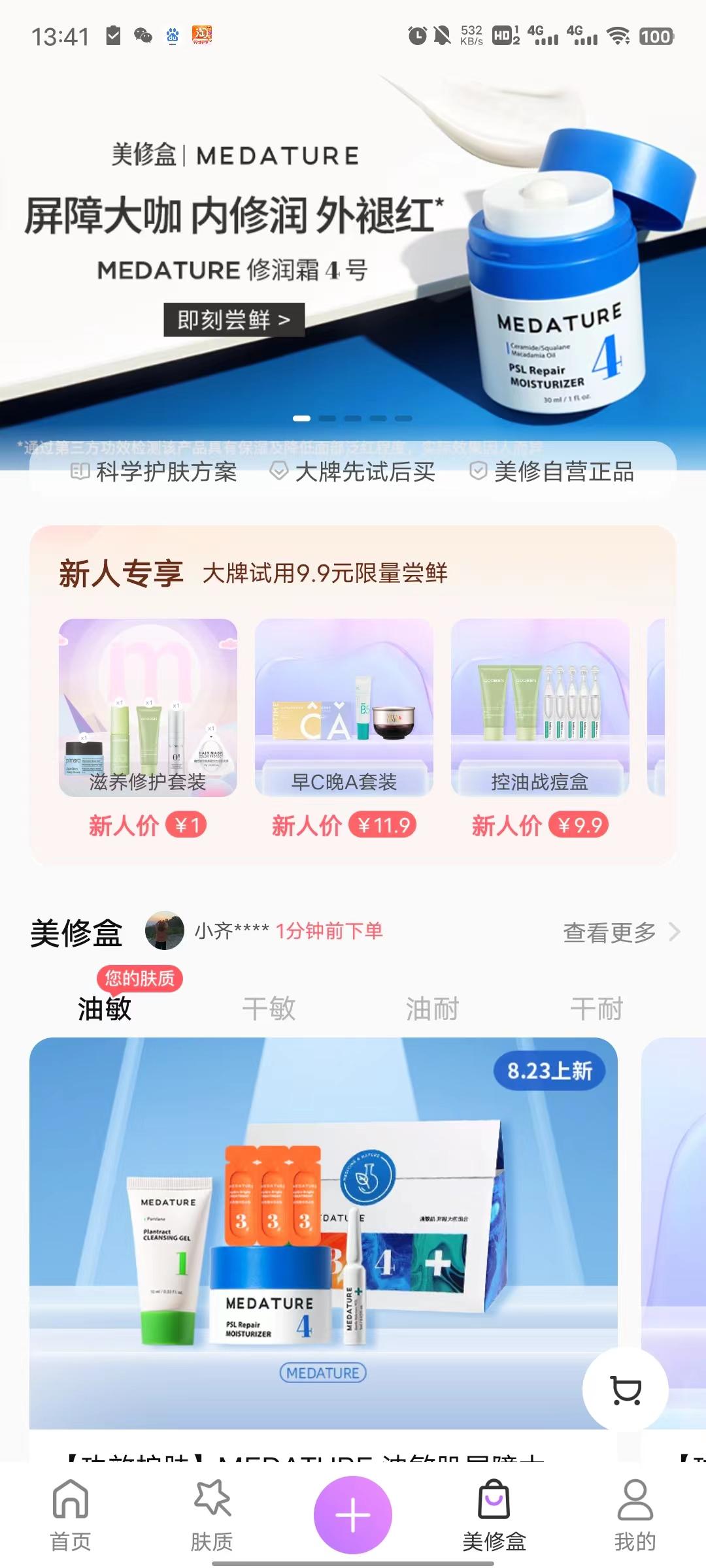 小陈是一名在校女大学生,平时的生活费不是很多,买东西一般都追求性价比。刚好她的护肤品用完了,而且之前的护肤品不太适合自己,用了之后长痘痘,这次想换一个效果更好的,但是小陈不敢轻易下手,怕再次买到不适合自己的产品。这时室友推荐她下载美丽修行APP,并告诉她美丽修行可以测肤质,并且根据个人肤质推荐产品,于是小陈果断下载并且通过拍照测肤获得了自己的专属肤质报告,同时系统还给她推荐了相同肤质的人正在使用的护肤品,小陈经过对比选择了适合自己的并且下单购买,使用之后发现确实好用,决定以后经常打开美丽修行看看。