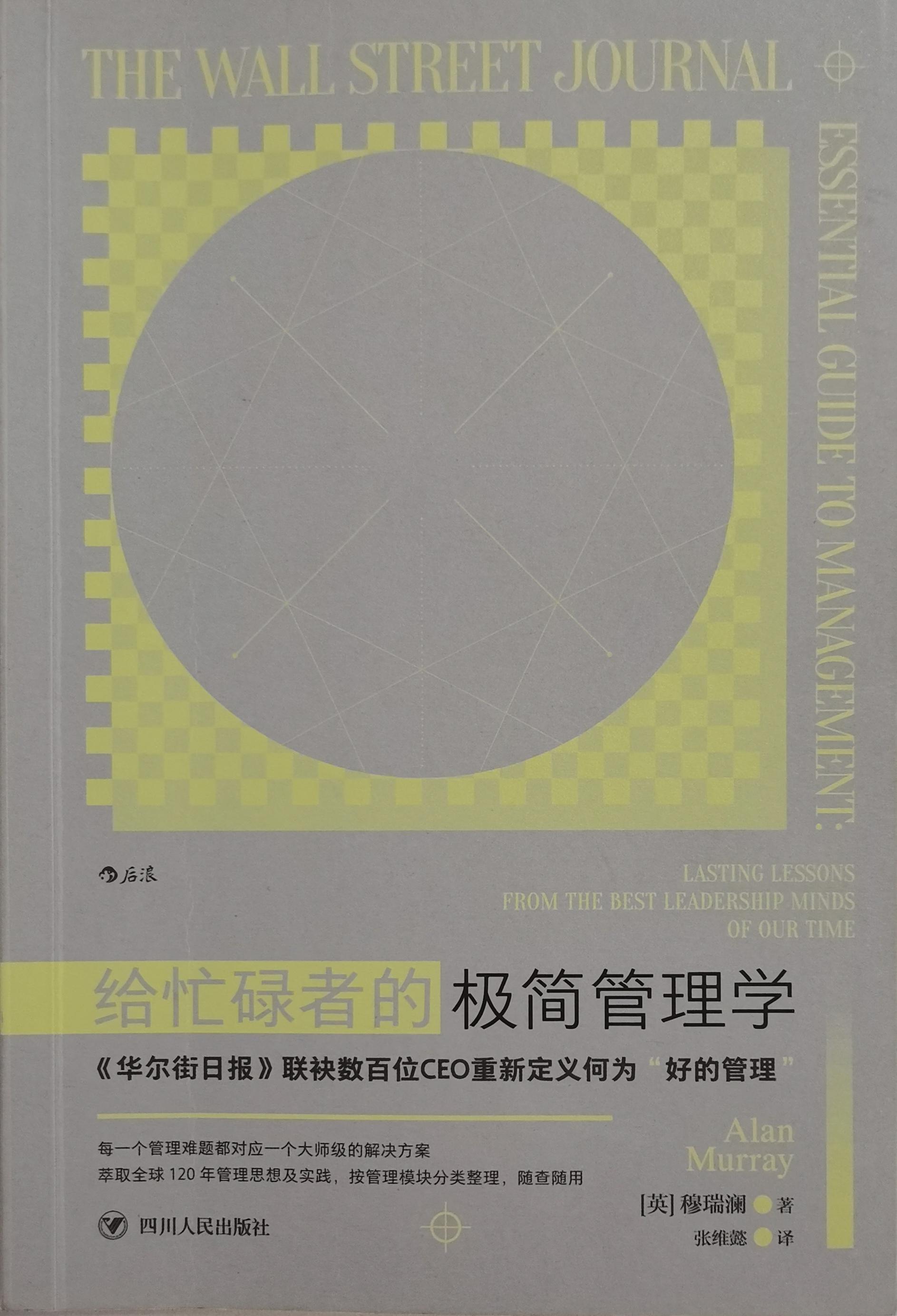 由现任《财富》杂志CEO,资深《华尔街日报》总编穆瑞澜撰写的《给忙碌者的极简管理学》一书,围绕战略思维,通过一个个精彩的案例,讲述了贴合当前社会实际、能够快速上手、适合新手和忙碌人士的通用管理理念,让你的管理能力迅速上台阶。