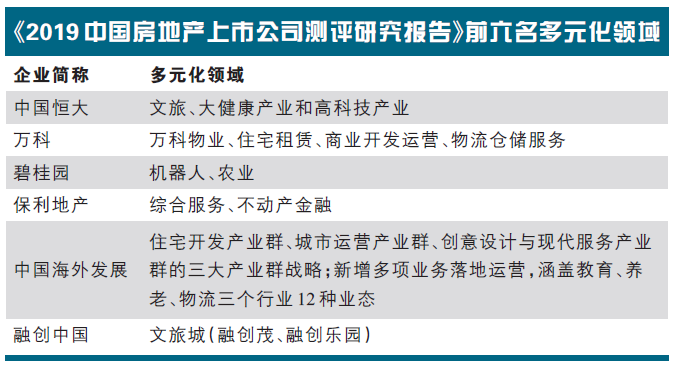 本文根据《2019中国房地产上市公司测评研究报告》,选取综合实力榜十强中的前六名加以了解房企多元化战略进展。