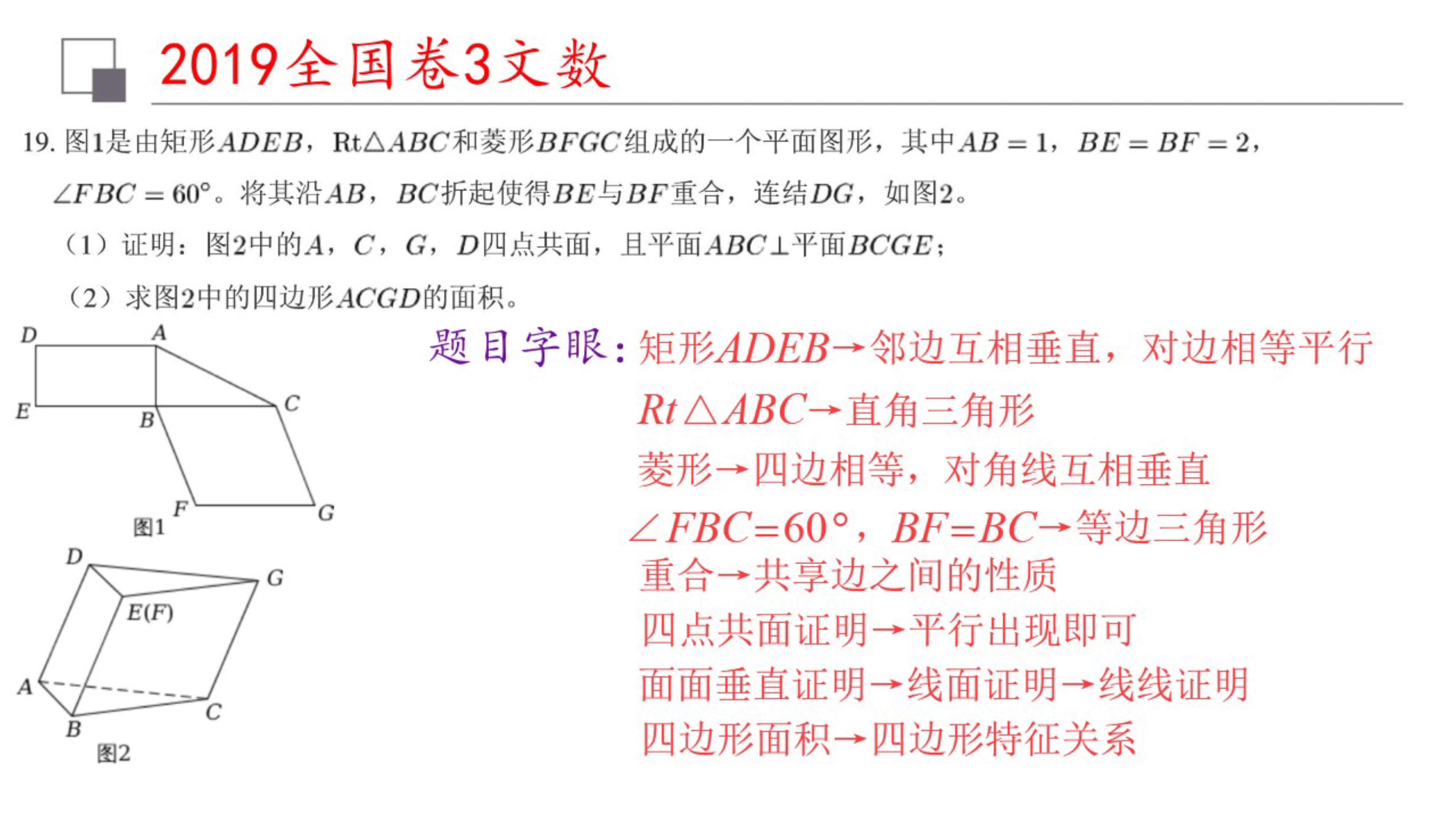我们可以看到,2019年全国卷三文数大题的“字眼”分析过程: