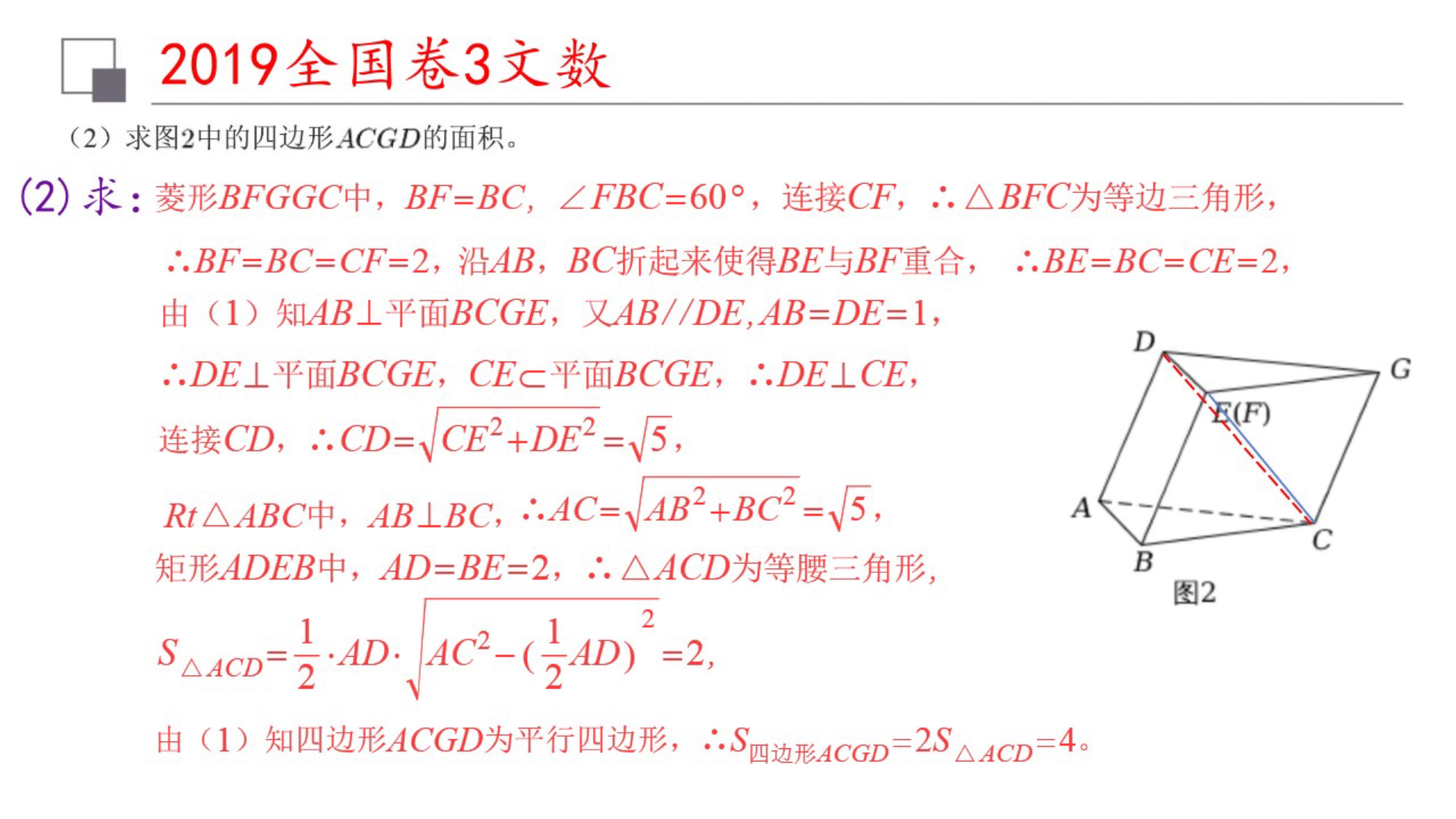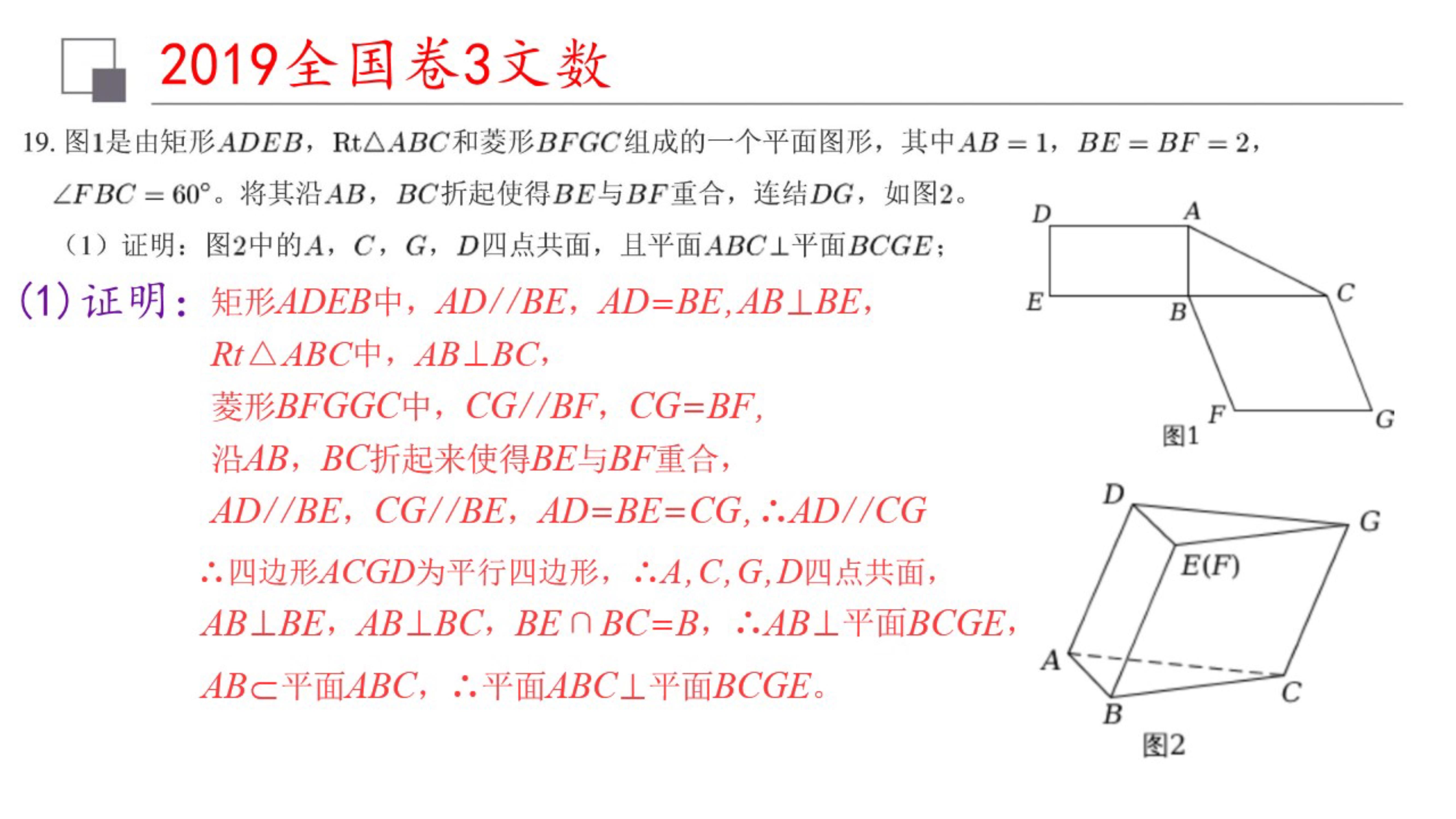 4、字眼“重合”促使了上述图形性质进一步结合,平行四边形得证后,字眼“四点共面证明”即可分析,也使得字眼“面面垂直证明”可以得到证明;