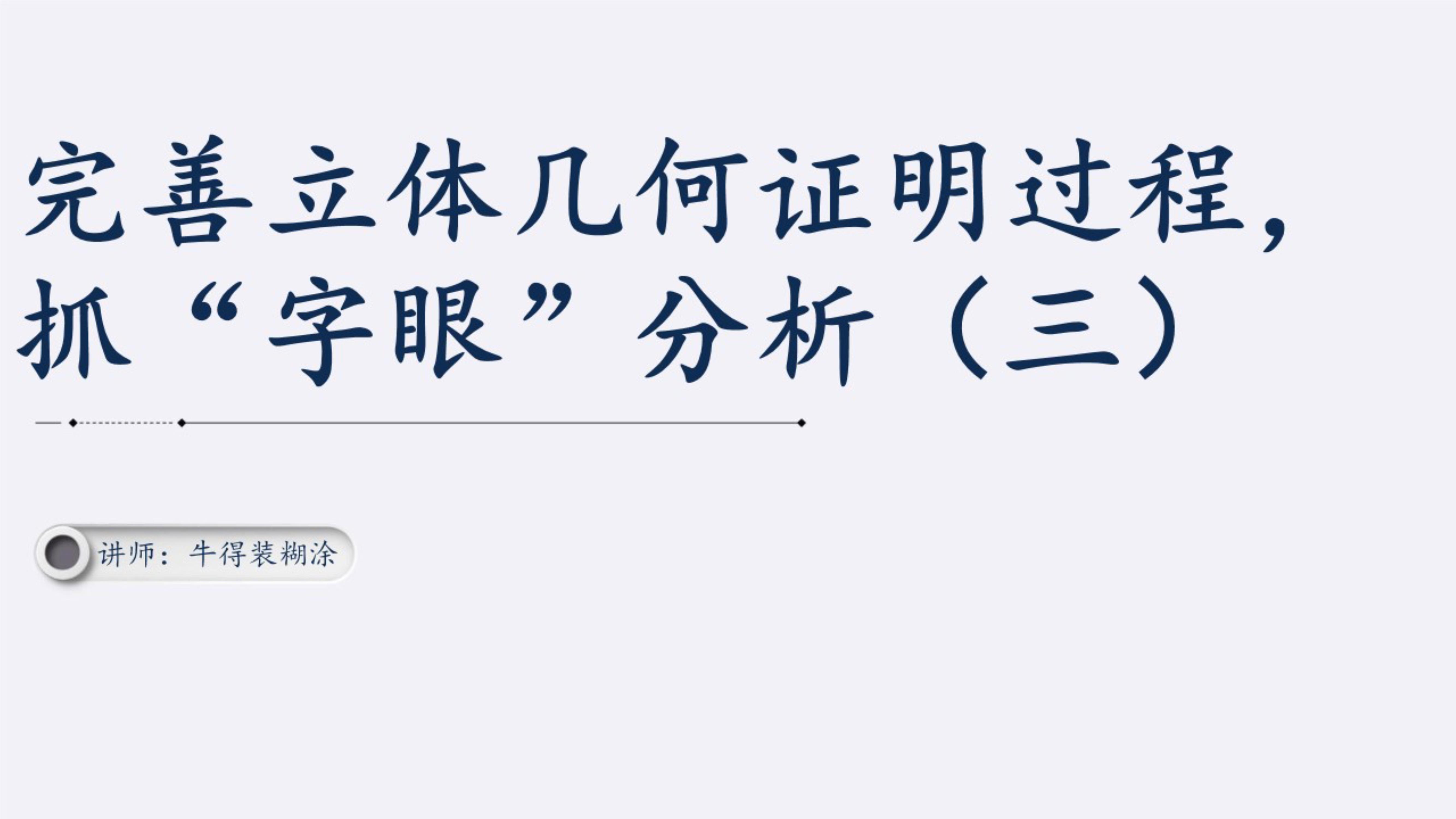 这里是“牛得装糊涂”数学课堂,今天分析的完善立体几何证明过程,抓“字眼”分析(三)内容已经结束。