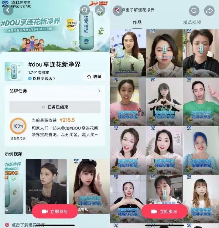 本月,国货药品「以岭」开启#dou享连花新净界 品牌任务,并联动@汤师爷、@温思儿等网络红人参与话题拍摄,通过剧情、贴纸使用等热门形式,来宣传产品“连花新本草,呼吸守护家”的价值内核。