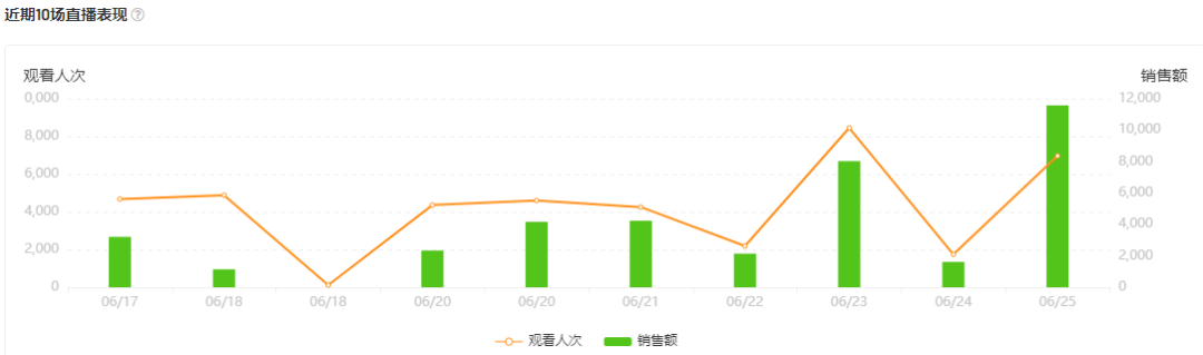 同时,品牌自播号以岭专营店与话题同期开播,持续在直播间进行带货,打造直播间口气清新系列的爆款商品,拓开品牌产品知名度。并且可见,品牌直播热度呈现逐渐上涨的趋势,并于6月25日销售额达到品牌开播以来的峰值。