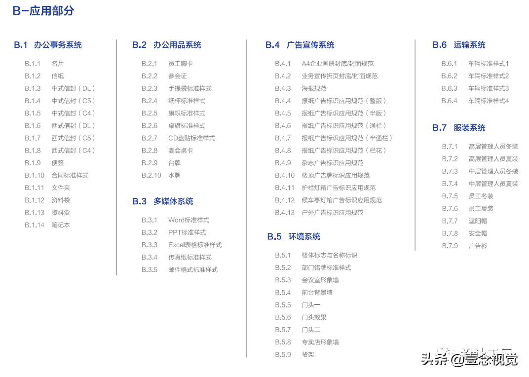 VI全称Visual Identity,属于企业CI中的一部分,是企业VI视觉设计,重要组成部分。CI包含三个方面。分别为BI、MI、VI,三方面为企业理念识别,行为识别和视觉识别。那今天和大家一起浅析下品牌视觉里面的应用组成部分,我们在前面大多讲的是品牌VI中的一些基础部分,感兴趣可往期翻翻前几期内容学习!