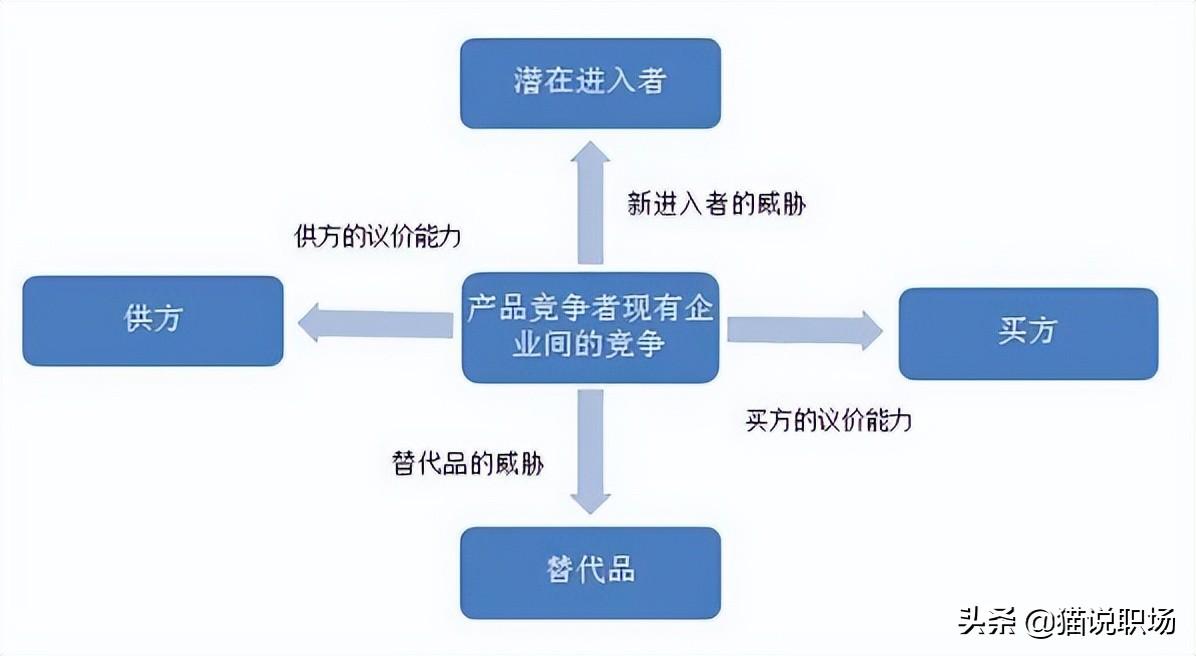 由迈克尔·波特提出,主要用于分析竞争环境,制定竞争战略。这种模型认为一个行业中的竞争,有5种基本的竞争力量,他们决定了行业竞争的相关特点的激烈状况。