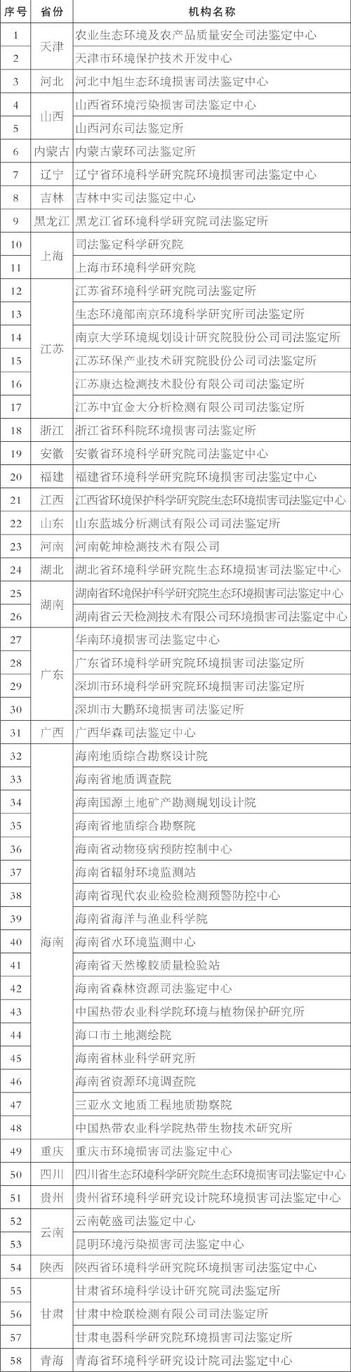 检察公益诉讼中不预先收取鉴定费用的环境损害司法鉴定机构名单