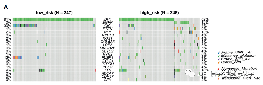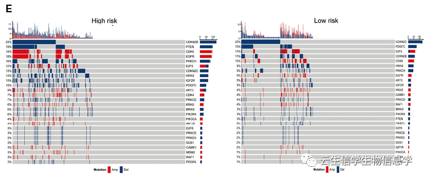 关键结果图7. 高、低风险组的体细胞突变和拷贝数变异