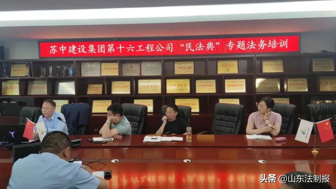 2021年5月28日下午,在日照海洋大厦苏中建设第十六工程公司会议室,山东东方太阳律师事务所张新律师(图中左一)围绕“民法典”、《最高院关于审理建设工程施工合同纠纷案件适用法律问题的解释》(一)(2021年1月1日起施行)及建筑工程相关法律法规等进行专题法务培训。供稿单位:山东东方太阳律师事务所