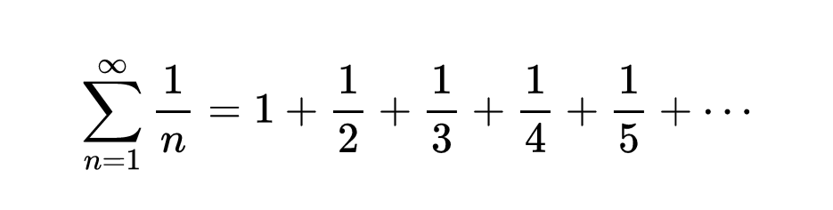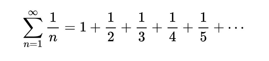 我们知道这个级数是收敛的,收敛于超越常数e。另一个类似的级数是调和级数: