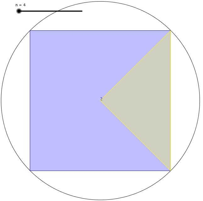 从一个正方形开始,不断地增加边的数目。一直到无穷大,得到3.1415926……