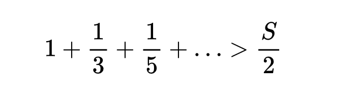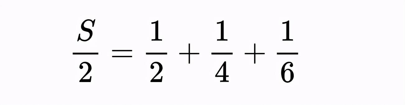 你可能会觉得这个级数也是收敛的。前一百万项的总和大约是14.8。但是如果我们假设调和级数收敛,收敛于S: