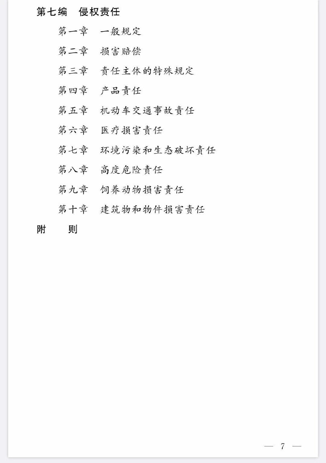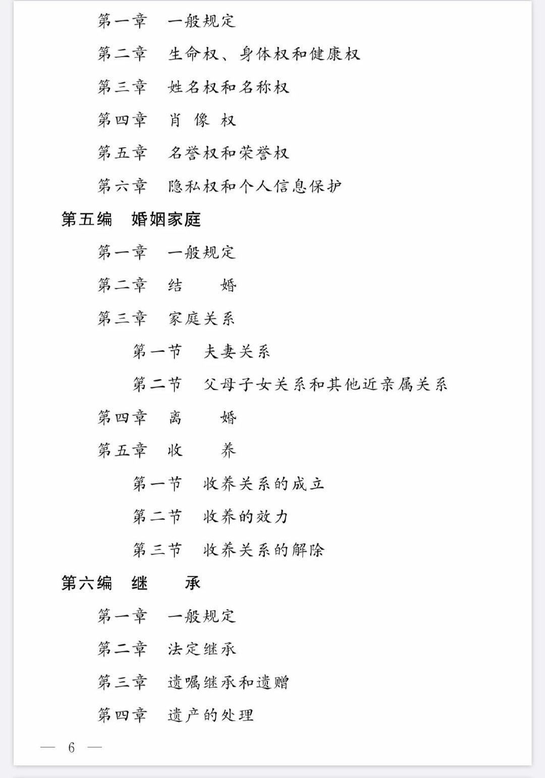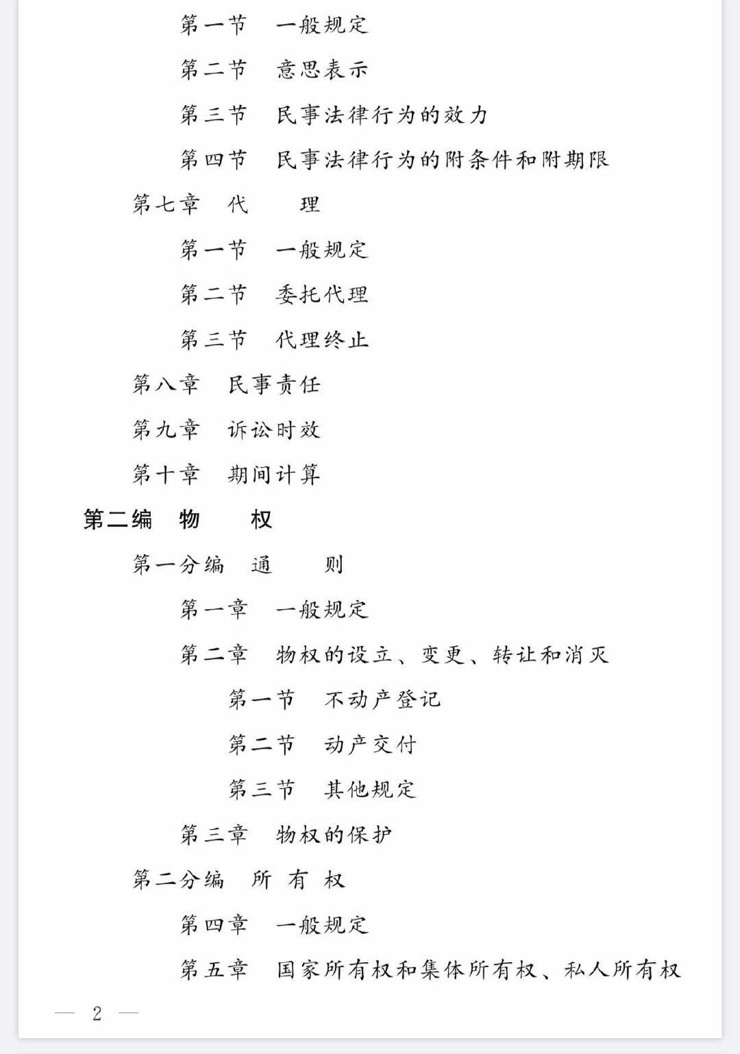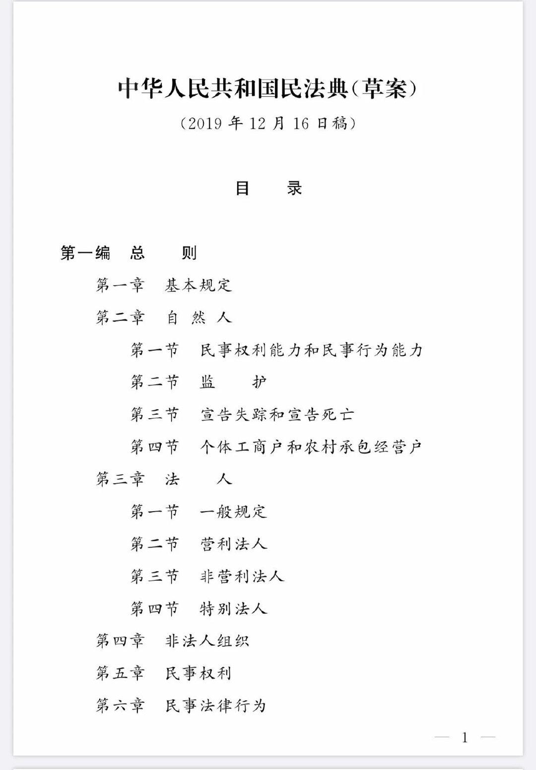 三、《中华人民共和国民法典(草案)》(2019年12月16日稿)目录