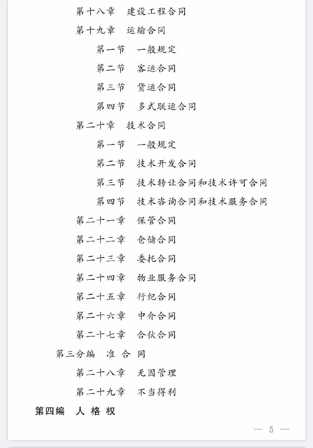 1.2、《中华人民共和国民法典(草案)》(2019年12月16日稿),合同法,共二十九章,五百二十五条,新增六章、九十七条。