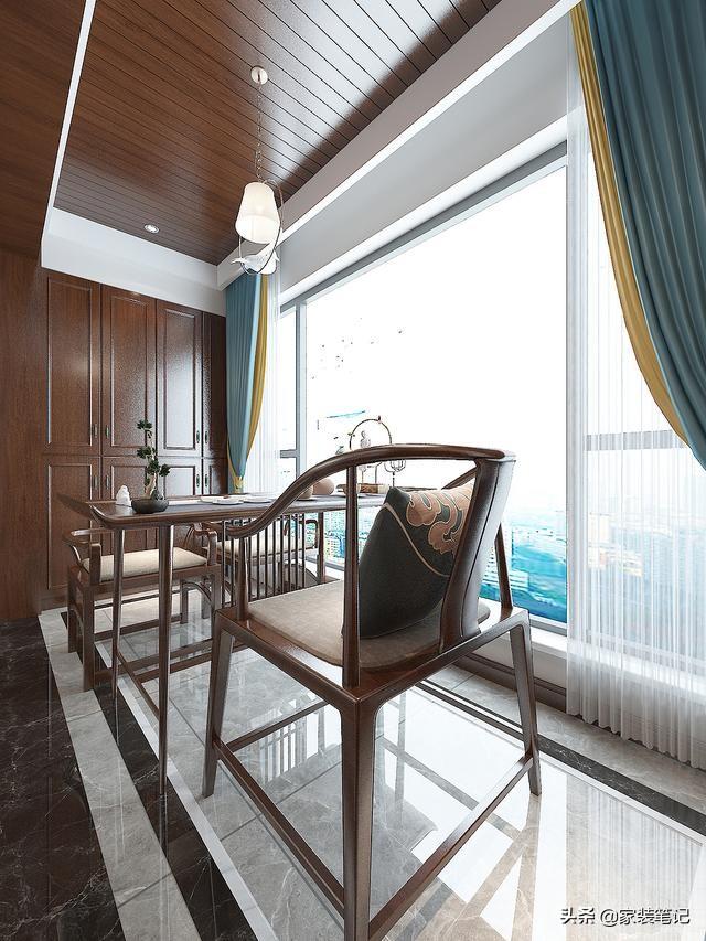 原本的大阳台,留了一部分出来给客厅,做休闲阳台。休闲阳台里面摆放茶台,可以起到客厅会客功能的延伸。