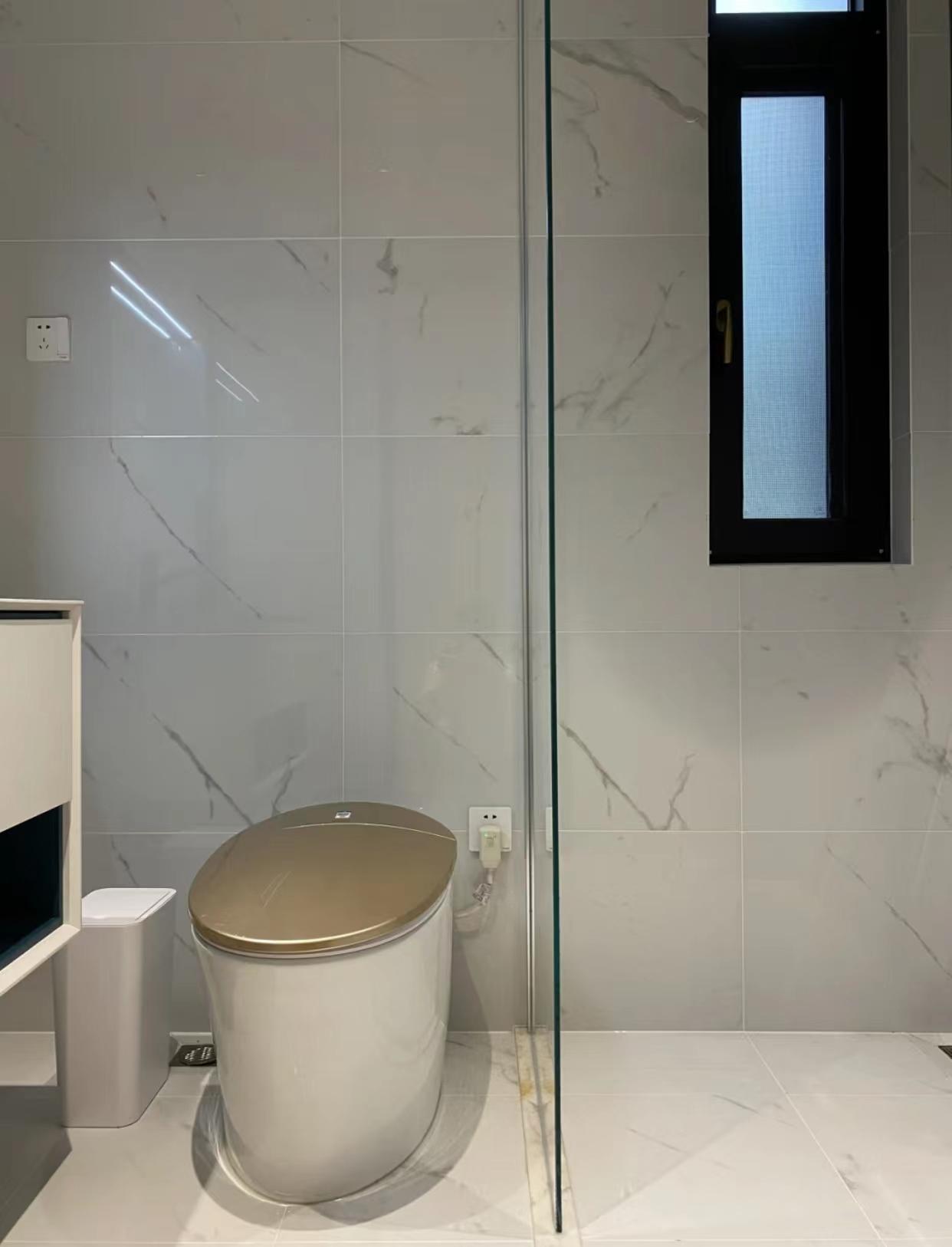 卫生间同样没有做太多的装修,一张极简的玻璃满足了干湿分离的需求,而30×60的白色墙砖,也让卫生间显得更加干净且高级。