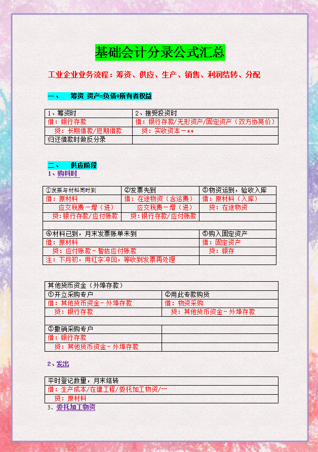 别急,今天和大家分享一套基础会计分录公式汇总大全,分录共28页,72个表格,清晰明了,帮助大家轻松掌握会计分录!尤其是新手会计,一看就懂![奋斗]