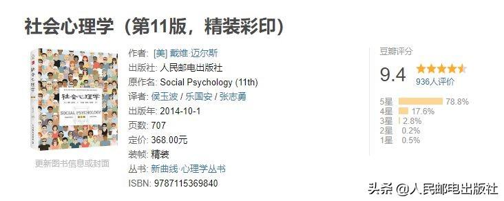 美国700多所大专院校社会心理学教学所采用的教材,出版30多年来,再版11次,知名主持人张泉灵多次推荐的案头必读图书,最近版本豆瓣评分9.4。