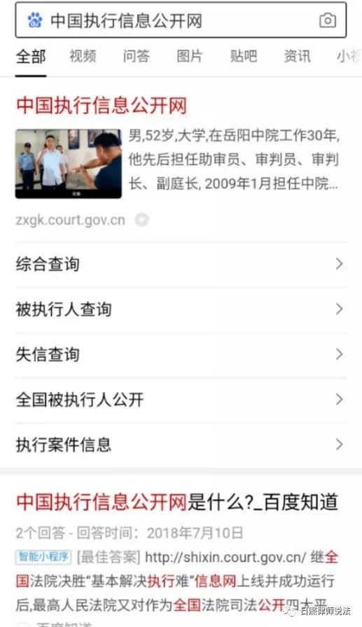 通过百度搜索“中国执行信息网”