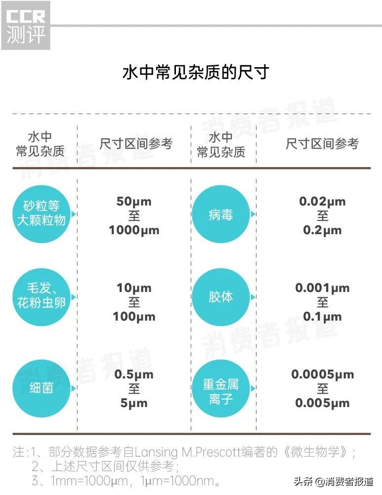 对于超滤净水器,它的过滤精度能阻挡花粉、虫卵、细菌以及部分病毒;对于过滤精度更高的反渗透净水器,它能有效过滤掉病毒、胶体、重金属离子等尺寸更小的杂质。所以,反渗透净水器过滤的水一般能达到直饮标准。