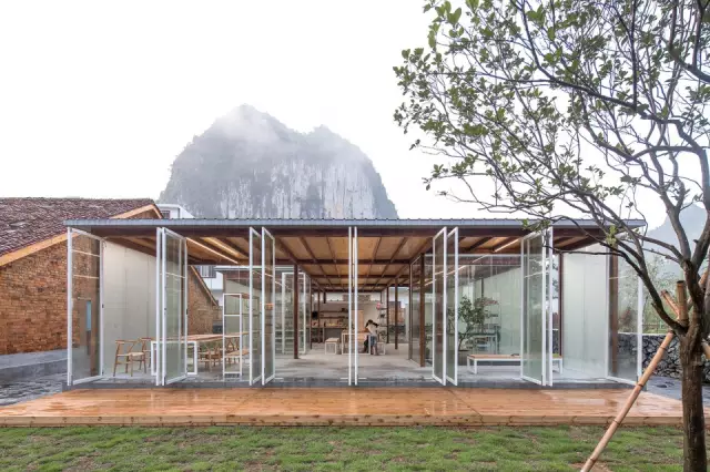 南院是城市和乡村的连接体,设计策略上建筑师采用一老一新的模式:将老房子完整改造,并在边上的空地上建造一个新的开放式建筑。