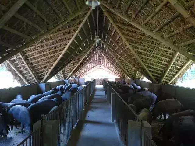 猪舍的建筑材料轻竹、卵石、茅草等,都来自于当地。为了保护农田,猪舍不做地基,只做了10个石墩,上面用竹构架连成一片,靠自重来稳定。轻竹的搭建非常方便,五六个人花了不到一周的时间就搭建起来了。劳力同样也来自于山区。