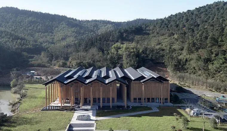 竹,从古至今既用作器物,又被赋予人文情怀。竹材易得,生长周期快,便于加工。建筑师充分利用乡村手工劳作的资源,在传统竹工艺基础上探求当代的手工艺建造方式,希望通过竹建重构乡村生活、农业和景观建筑并满足。并满足当代回归自然的文化需求。