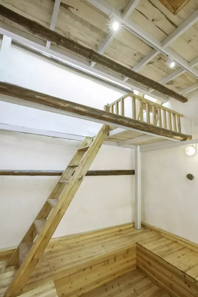 因老房子的内部纵横墙体较多,空间狭窄,建筑师将老房子的内部墙体拆除,植入了钢结构形成大空间,并且增加了夹层。钢结构和砖墙混合承重,支撑着新的屋顶,也让有坍塌风险的墙体变得更加稳定。