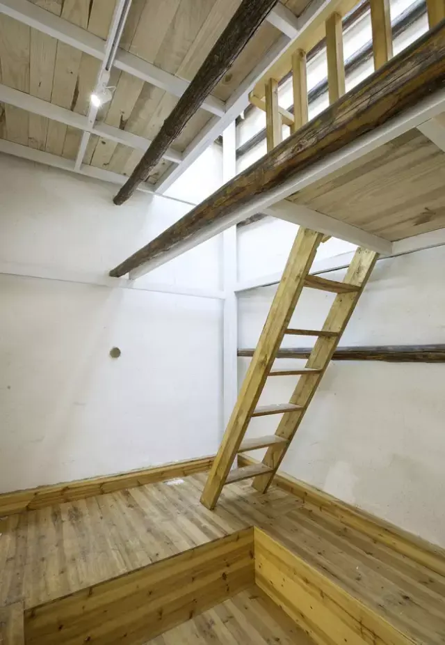 由于烤烟房空间狭窄,内部形成一种类似“深井”的消极空间,而分割两层又略显局促。屋顶的抬高给内部分割空间提供了可能。