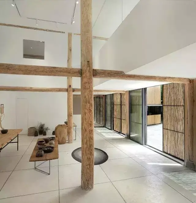 样式选择之后,进行了少量现代设计的改进,让结构更加合理。室外的廊子延伸到室内,室内外部分结构是一致的。