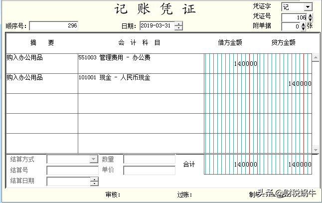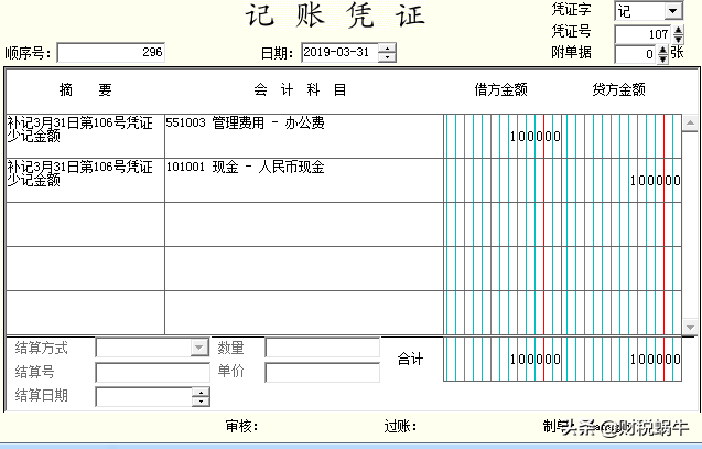 记账金额小于实际发生的金额,适用于补充登记法更正补充错账,摘要栏填写“补记3月31日第106号凭证少记金额”如图所示: