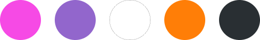 使用明亮的粉红色和紫色,可以让用户感觉更有活力和创造力,并添加了一种互补色——橙色和柔和的颜色——黑色和白色来平衡色彩系统。