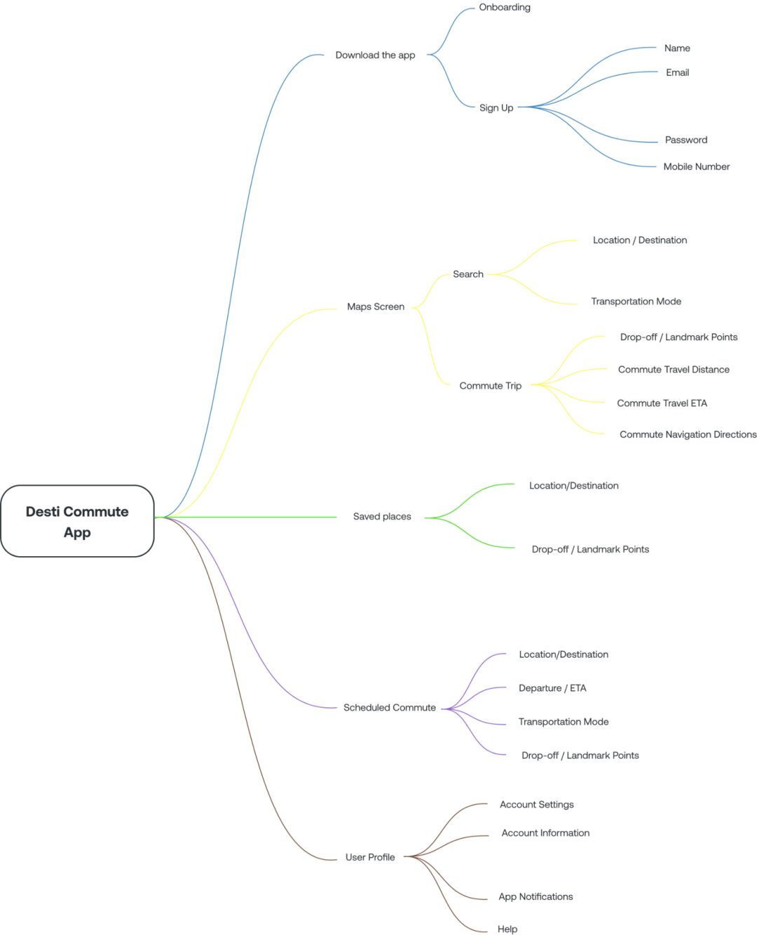 然后,团队确定了通勤者使用的流行交通和导航应用程序的核心功能,例如预订乘车、查看计算票价和预计到达时间、预测交通状况等等。