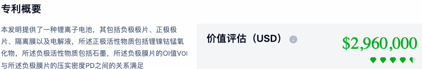 根据智慧芽专利价值评估数据显示,这五项专利的价值评估金额(算法根据模型算出来的估量,仅供参考)分别为93万美元、3600美元、21万美元、296万美元和114万美元,合计524.36万美元(折合人民币约3544.88万元)。