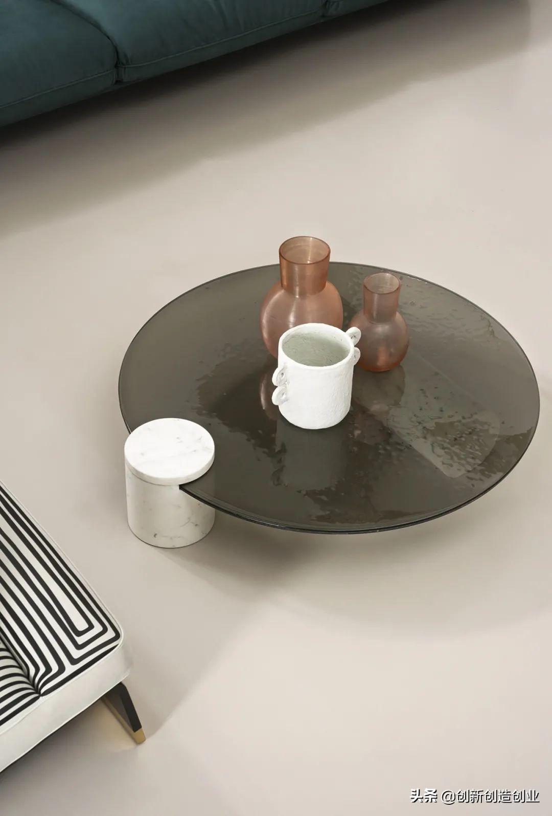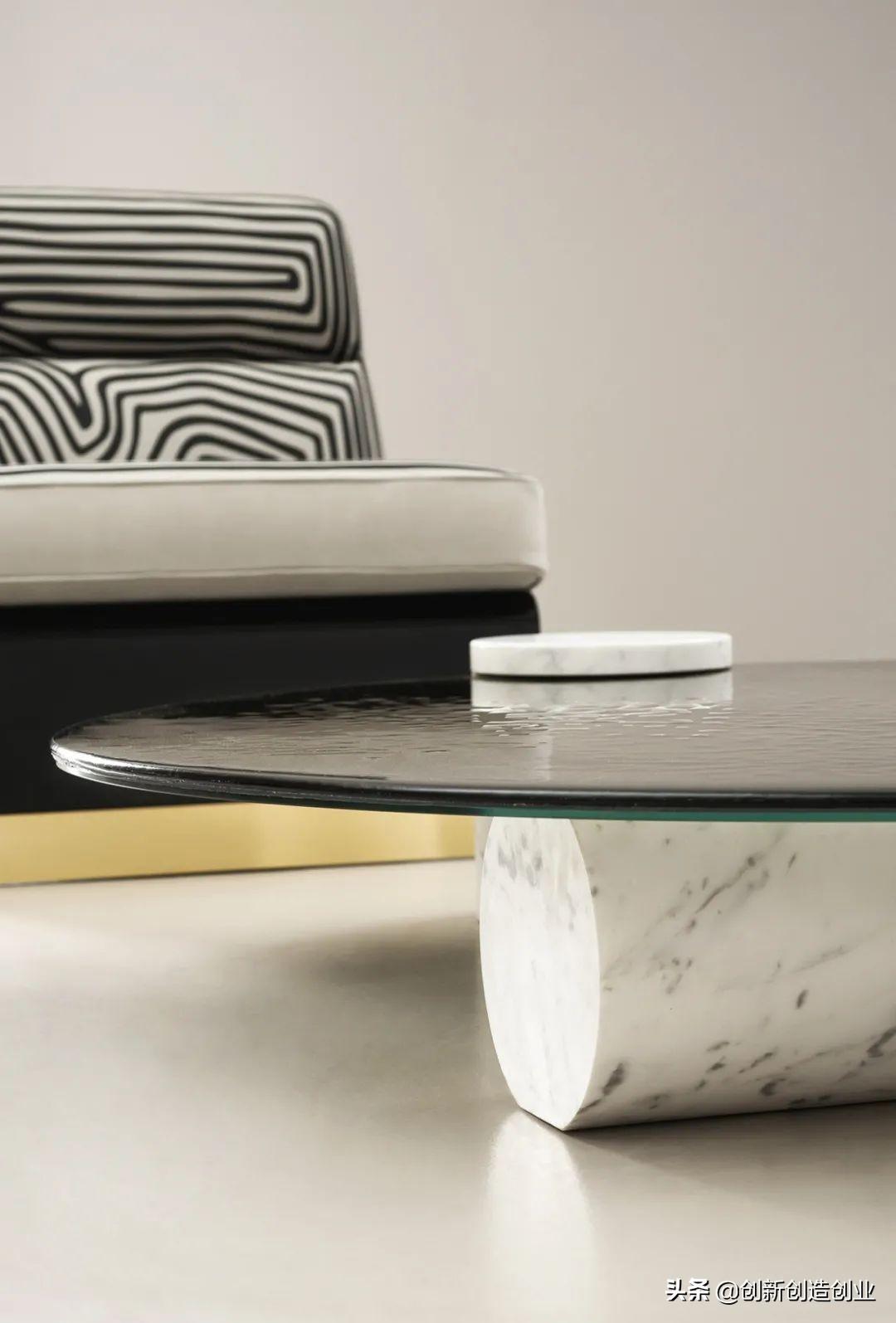 该咖啡桌的设计具有独特的特点,它见证了两种独特材料之间的相遇。大理石,以其非凡的天然纹理和玻璃融合,由专家用一种特殊的技术来获得一个不完美和不可重复的表面。其形状柔软圆润,曲线与底座的独特性和圆柱形轮廓相结合,给人一种自然流畅的感觉。